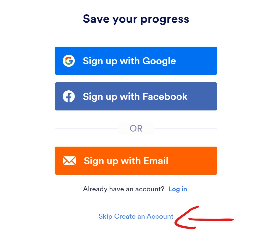 Si aprirà una finestrella (Fig.1) che permetterà di selezionare la modalità di salvataggio; suggeriamo di cliccare sull'opzione "skip create account" per ottenere direttamente il link personalizzato che permette di riaccedere alla pagina con i dati salvati.